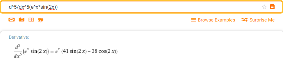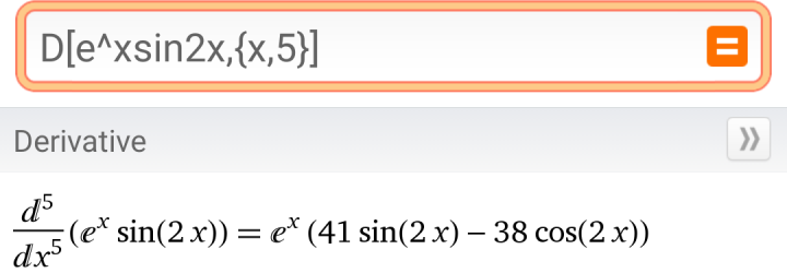 法II: 输入: d^5/dx^5(e^x*sin(2x))