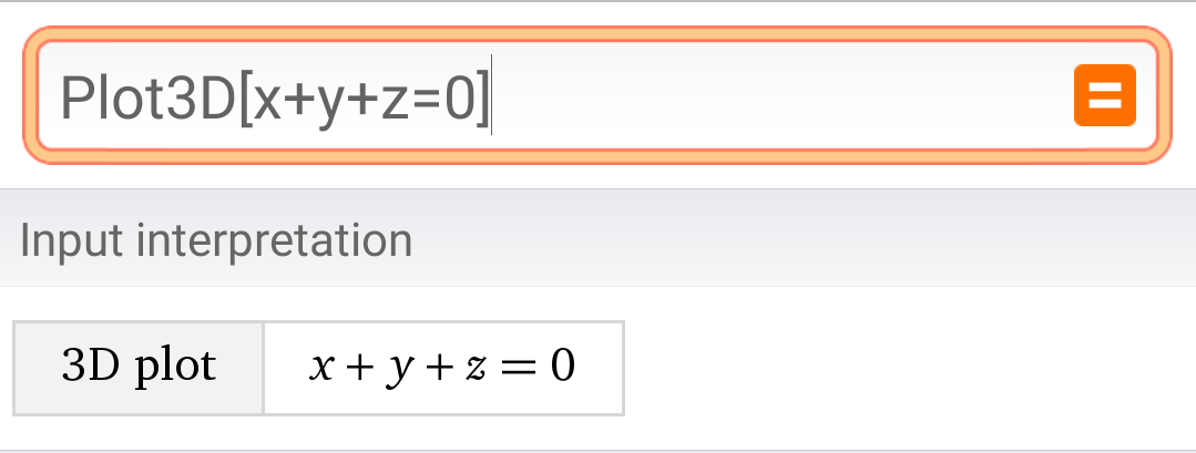 输入: Plot3D[x+y+z=0]